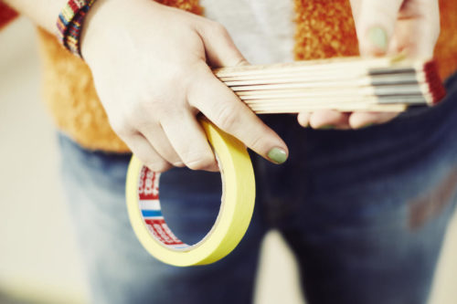 Rulla ut underlagsmaterialet längs rummets längd. Tejpa skarvarna så att underlaget ligger tätt.